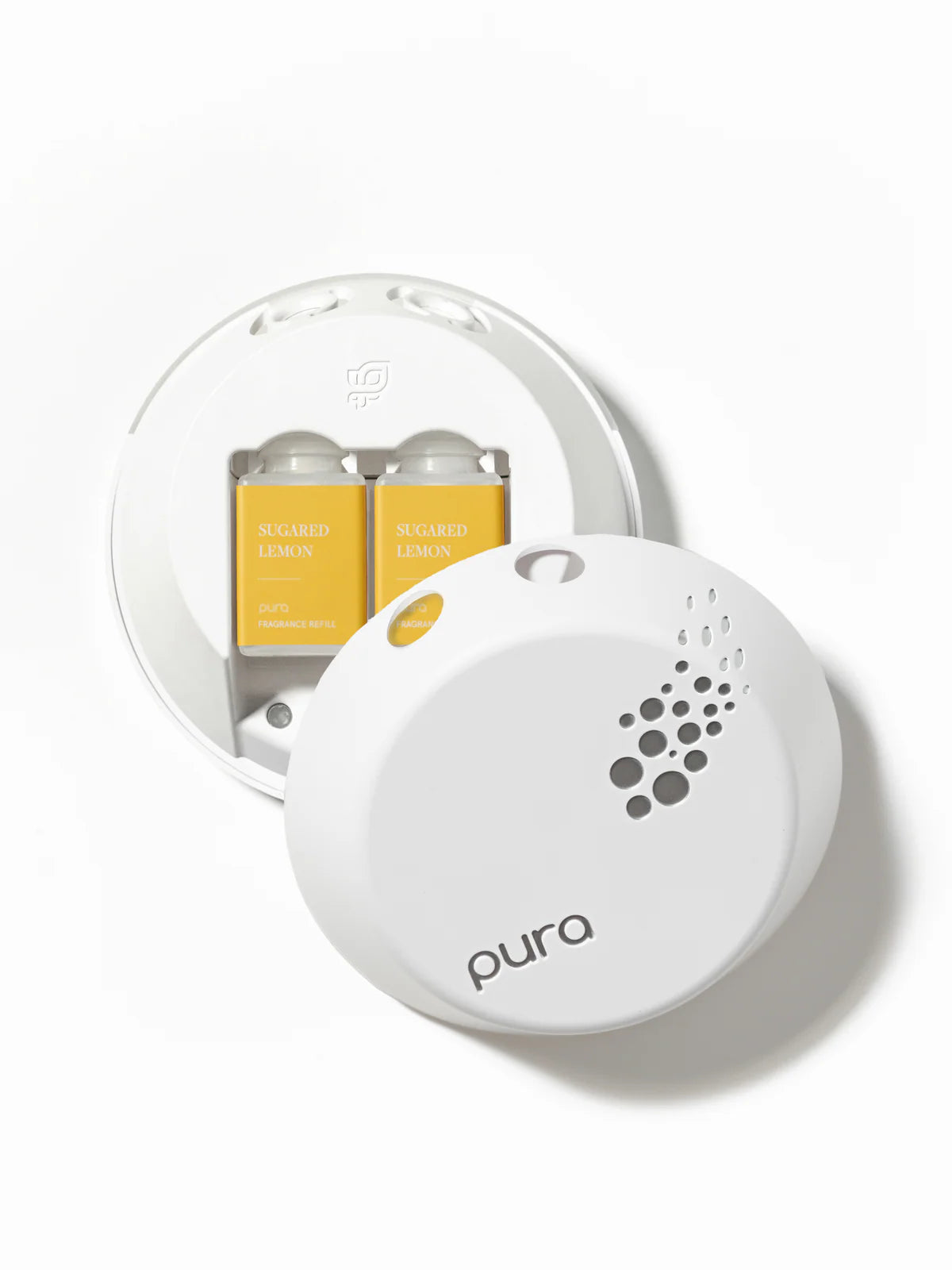 Pura’s smart fragrance diffusers are designed with Puralast™ diffusion technology, which optimizes scenting based on the intended fill space of each diffuser. Because of this, fragrance vials may last for different lengths of time.